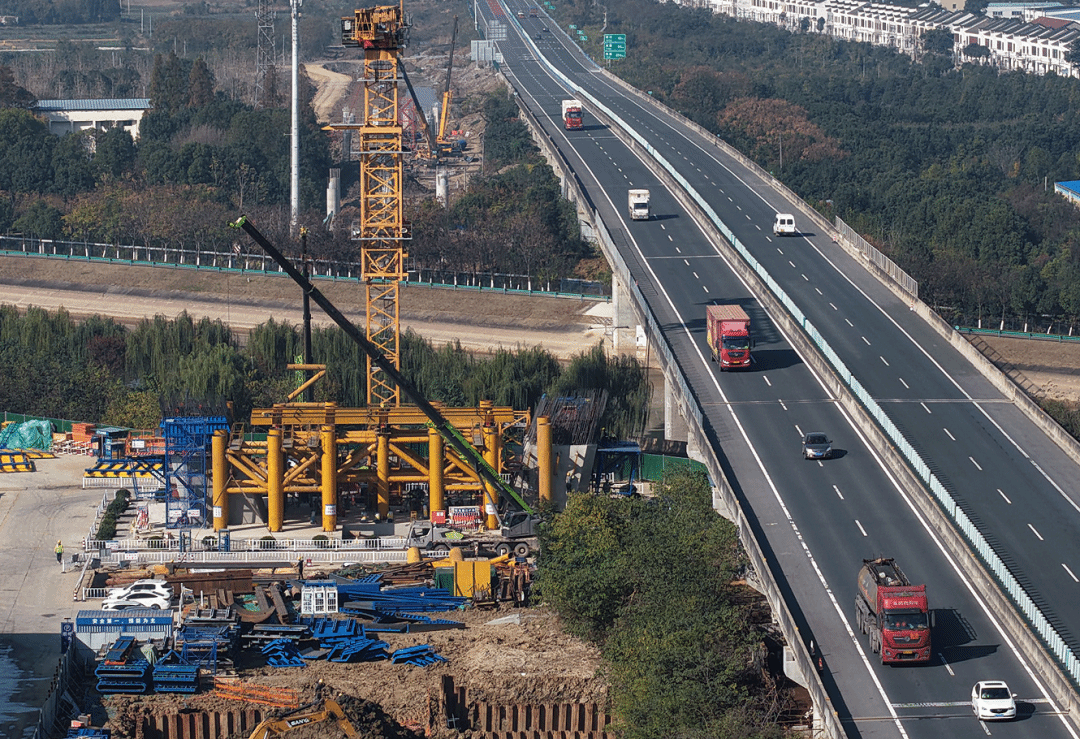 汉宜高速改扩建荆州拍马创业路段建设现场。 梅闻 摄