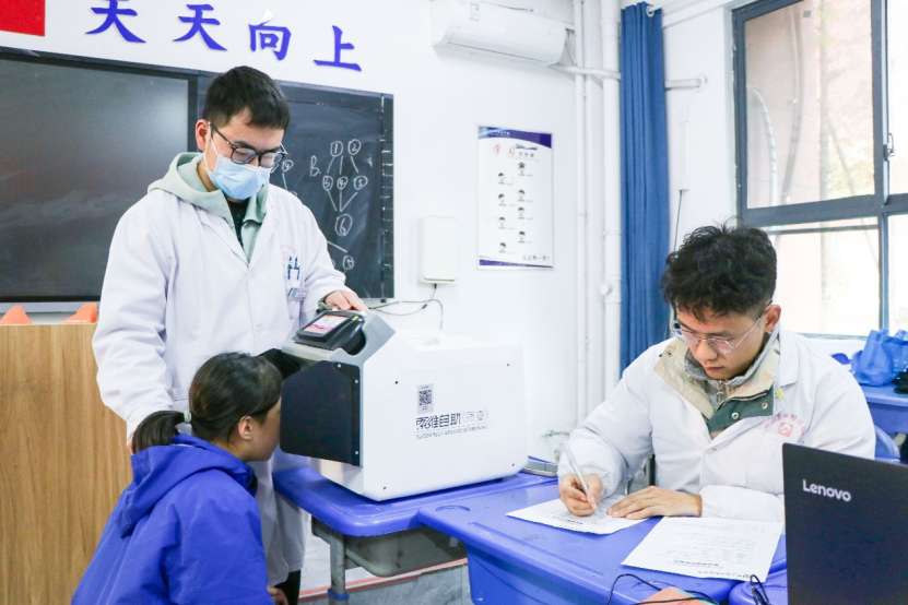 活动中,医生不仅对学生的裸眼视力,还对学生的屈光度进行了全面检查,对于筛查中发现视力异常的学生,医生给出了专业的建议和后续治疗方案。筛查结束后,学校将系统汇总学生视力数据,并第一时间反馈给家长,帮助家长全面、准确地掌握孩子的视力状况,以便及时采取科学的干预措施。