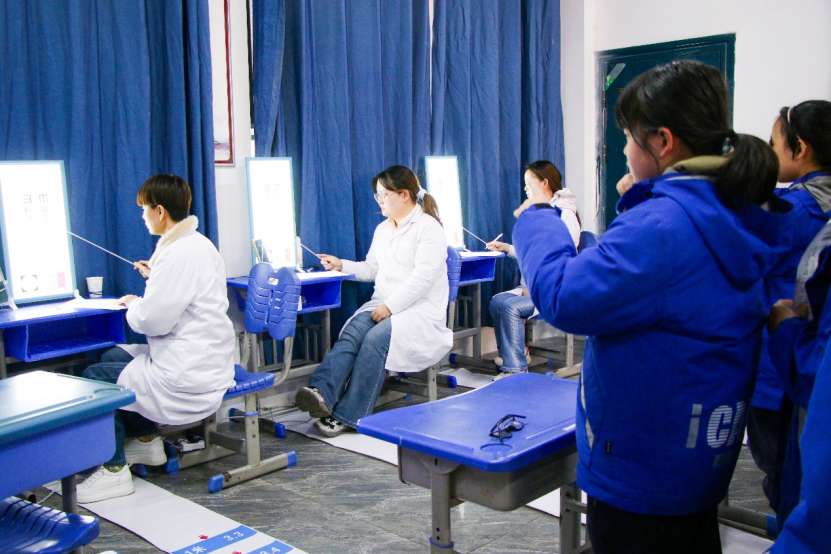 今日竹山网消息 11月30日,竹山行知学校特邀县妇幼保健院医务人员来我校为中小学生进行全面视力筛查。