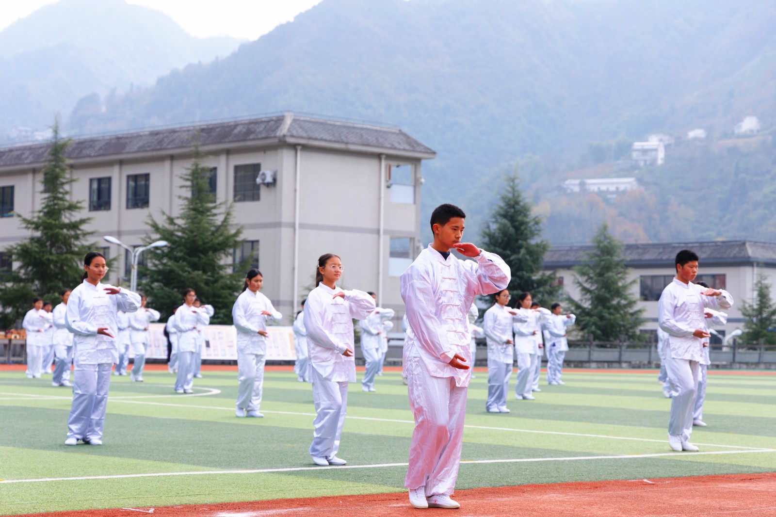 活动在幼儿园宝贝们的蒙古筷子舞《白马》中拉开帷幕,小舞者们握着筷子踏着欢快节拍,将草原的自由与灵动展现得淋漓尽致,赢得阵阵喝彩。小学部的花式课间操《志风少年》则画风一转,同学们以矫健身姿舞动青春节拍,用灿烂笑容诠释阳光活力,展现出新时代少年志存高远、昂扬向上的精神风貌。初中部学子演绎的《武当太极九式》更是将活动氛围推向高潮,一招一式间动静相宜、刚柔并济,既展现了青春的沉稳力量,又传承了千年太极文化的哲学智慧,让观众感受到东方传统文化的独特魅力。官渡九年一贯制学校小学部合唱队带来的合唱《我有一个装满星星的口袋》,以清澈纯净的童声勾勒出童话般的梦境,传递出孩子们纯粹的想象与美好。