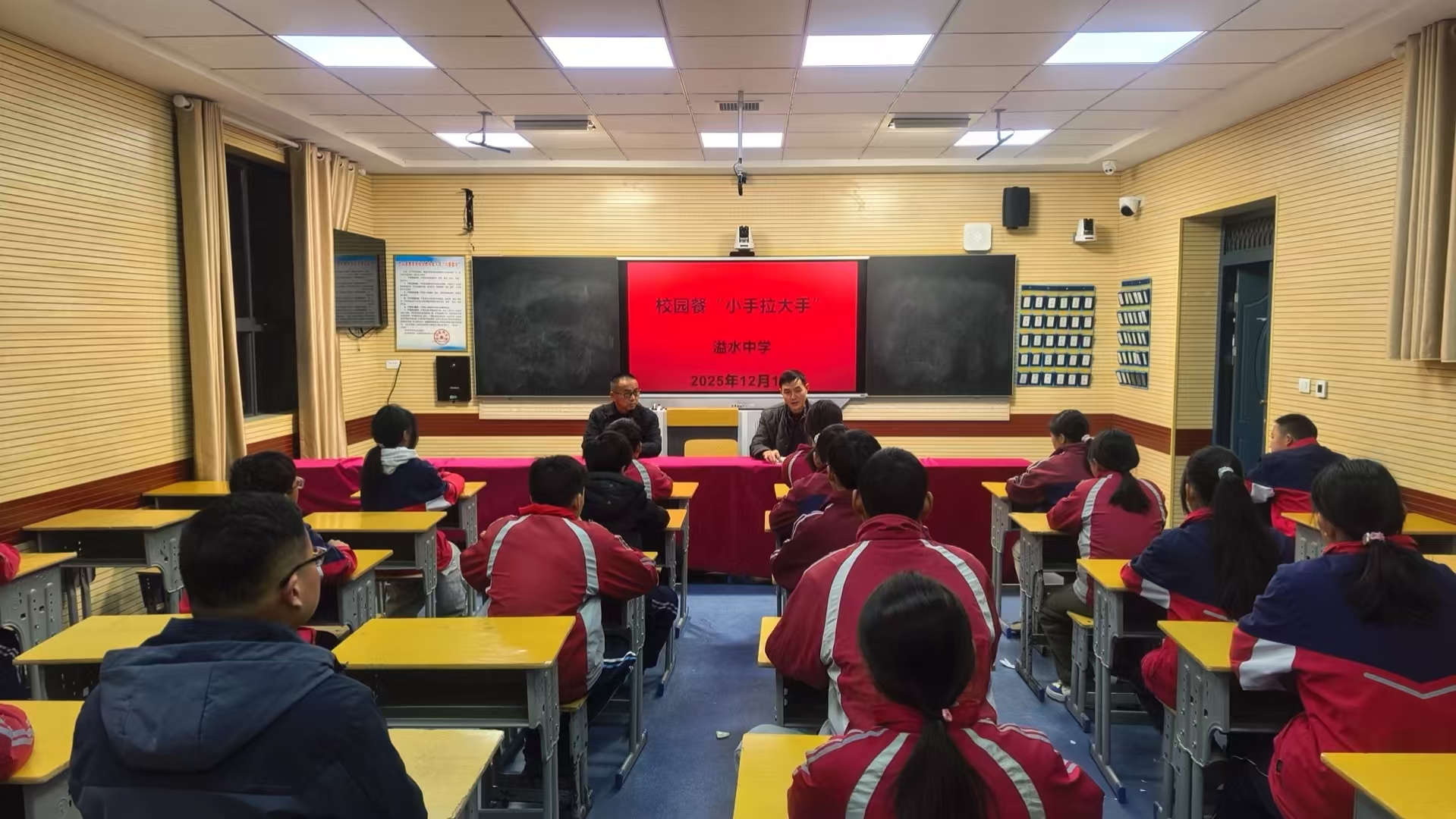 今日竹山网信息 12月1日,溢水中学在录播教室举办“小手拉大手”主题活动。