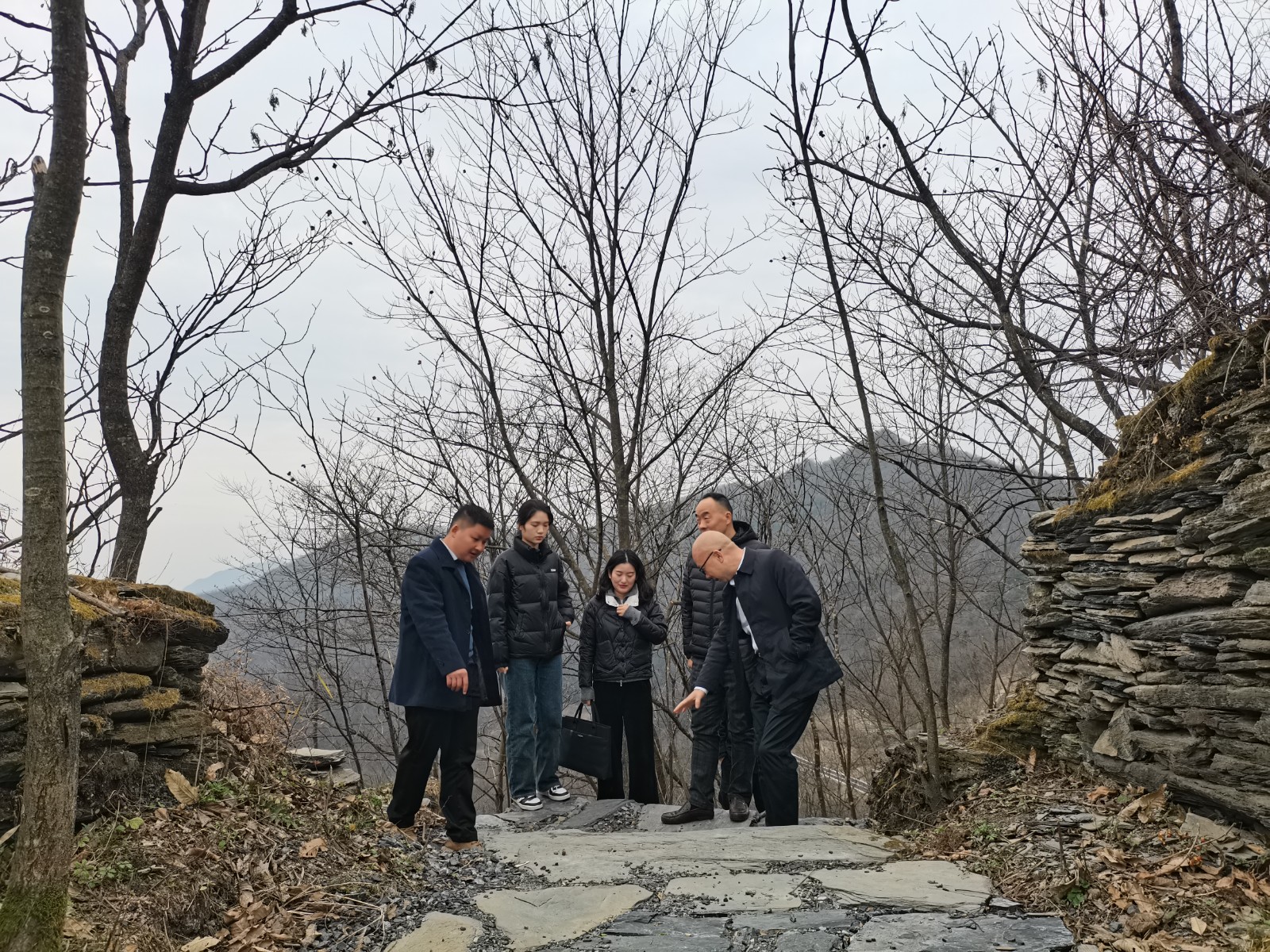 巡查中,工作人员沿着长城遗址一路向上,对城墙、烽火台、公示牌等进行查看,是否有风化、坍塌、人为损坏等情况。针对发现的问题提出整改建议。