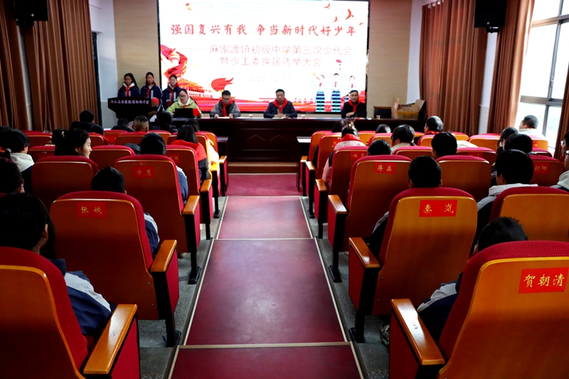 今日竹山网消息 12月11日,麻家渡镇初级中学迎来了一场意义非凡的盛会——中国少年先锋队第三次代表大会暨少工委换届选举大会。全校的少先队员代表和少工委成员们欢聚一堂,共同见证了新一届大队委员的履职启航。