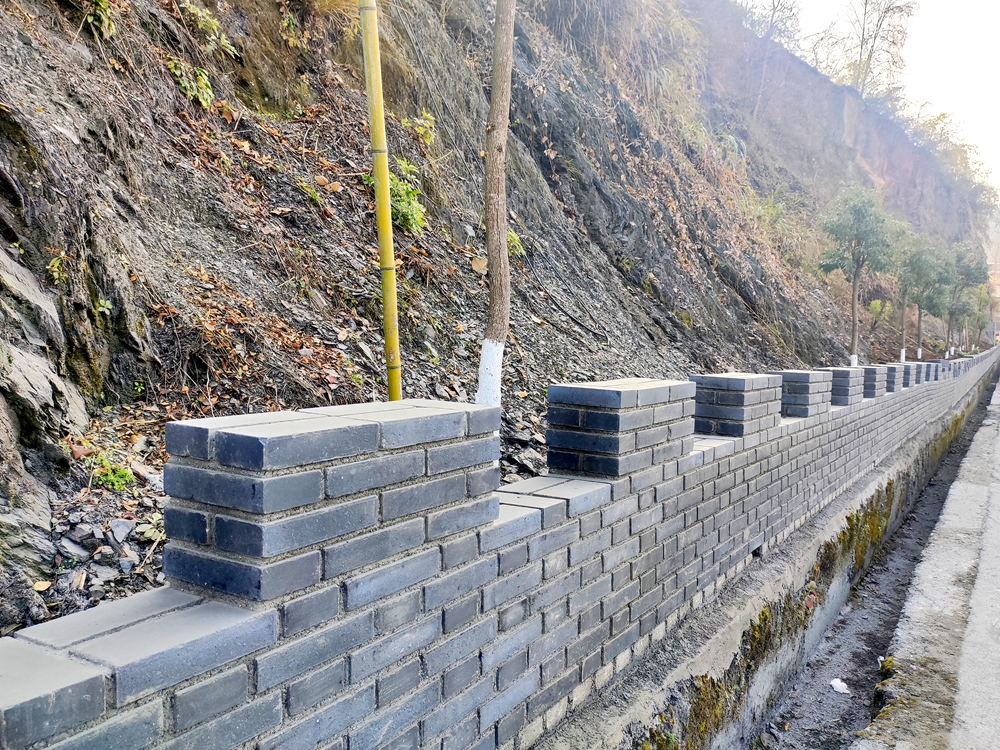 古朴砖石错落铺砌,既复刻了传统建筑的雅致韵味,又筑牢了道路沿线的安全防线。整齐的墙沿随路蜿蜒,与周边青山绿水、白墙村居相映成趣,既提升了乡域风貌颜值,更守护着群众出行的平安坦途,绘就出一幅“古韵新风相融,安全美景共生”的乡村建设新画卷。(张云朝)