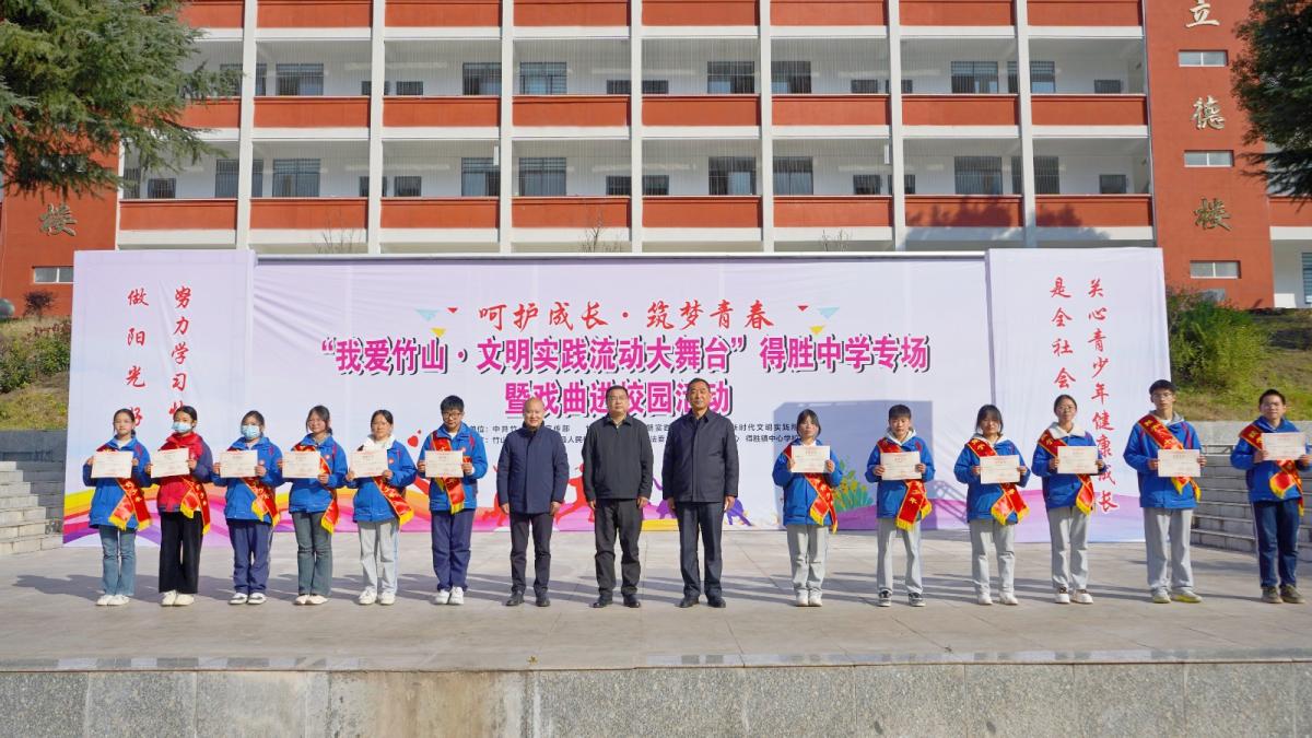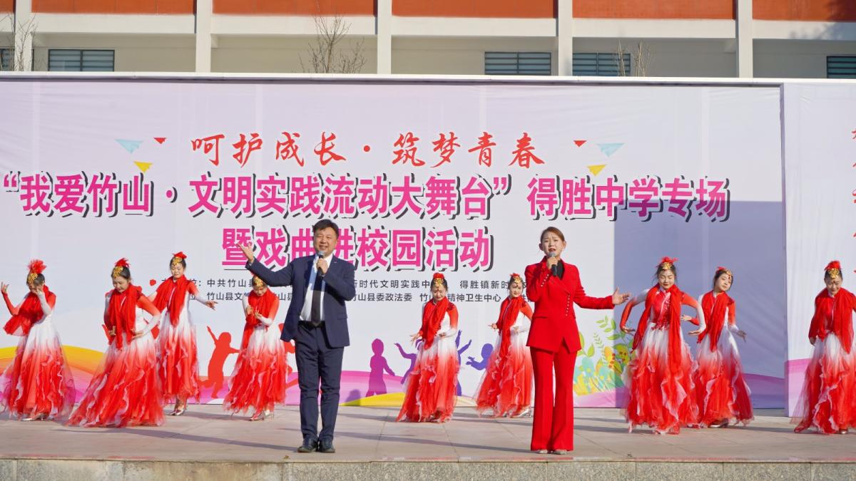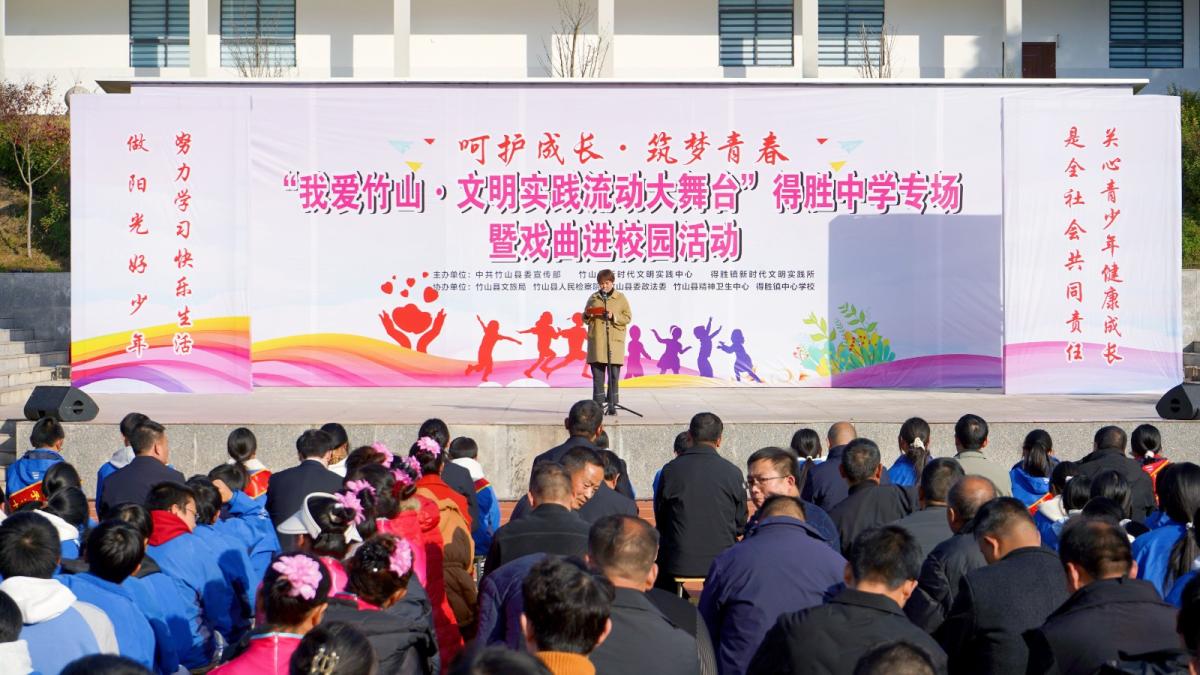 今日竹山网消息 12月11日,我县“呵护成长・筑梦青春”文明实践流动大舞台暨戏曲进校园活动在得胜镇中学举办。