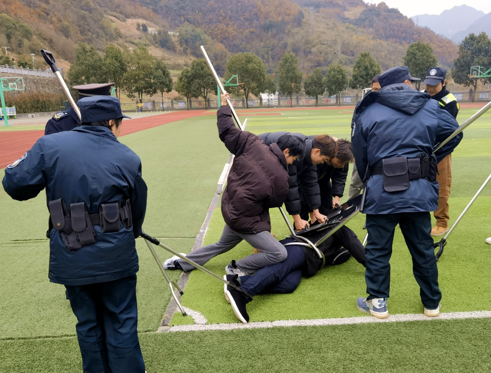 几分钟内,乡派出所民警火速抵达现场,与学校护校队协同配合,运用战术将“歹徒”有效控制并带离。整个过程紧张有序,各部门响应迅速、配合默契。