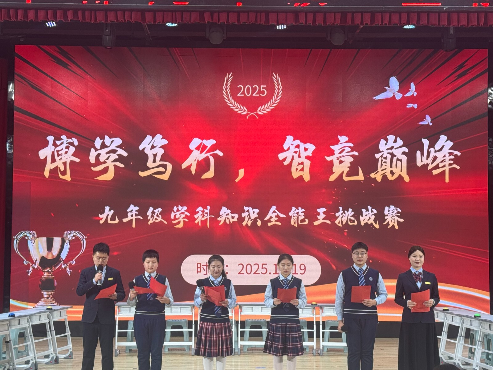 今日竹山网消息 12月19日,南山五福堂外国语学校以“博学笃行,智竟巅峰”为主题,举办九年级学科知识全能王挑战赛。