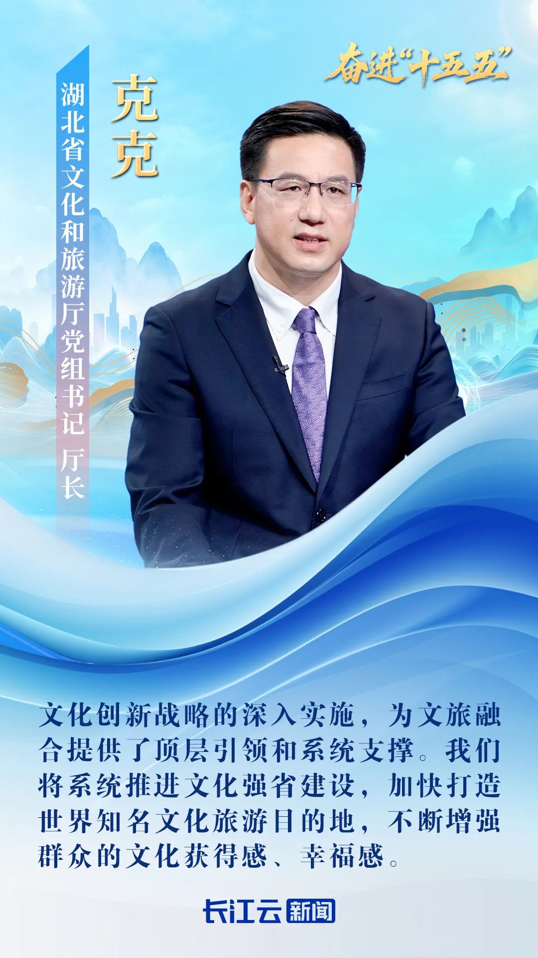湖北省文化和旅游厅党组书记、厅长克克:目前,我们正在策划10大类共100个标志性文旅活动。包括高规格的艺术节会、文旅展会,全民性的大型演唱会、群众文化活动,以及高品质的经典剧目、展览展演、文旅产品等,应有尽有、贯穿全年,敬请期待!