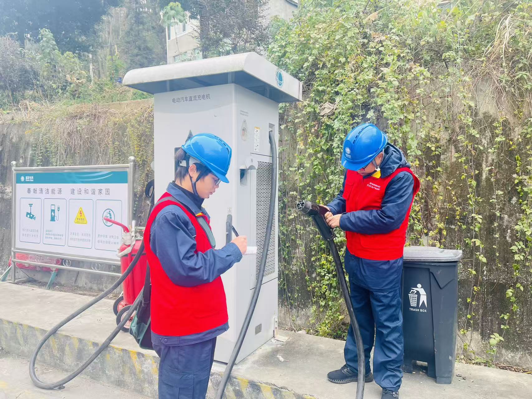 今日竹山网消息 12月19日,国网竹山县供电公司庸都服务站员工前往秦巴艺术中心充电站,检查新能源车的充电桩,为市民冬季绿色出行保驾护航。