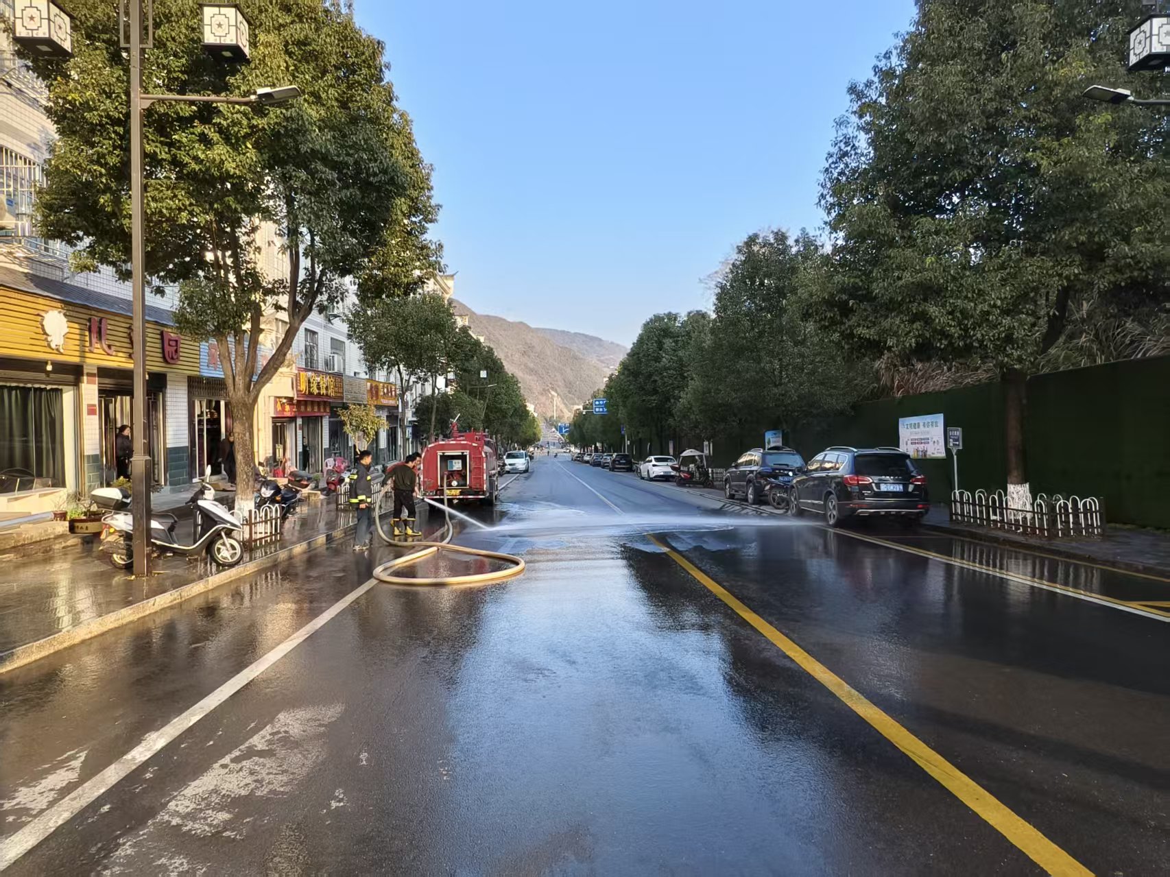 今日竹山网消息 为持续擦亮集镇人居环境“底色”,打造干净整洁、宜居宜业集镇,近日,官渡镇组织开展集镇路面水洗清扫专项行动,以精准举措提质人居环境,让集镇颜值与群众幸福感同步提升。
