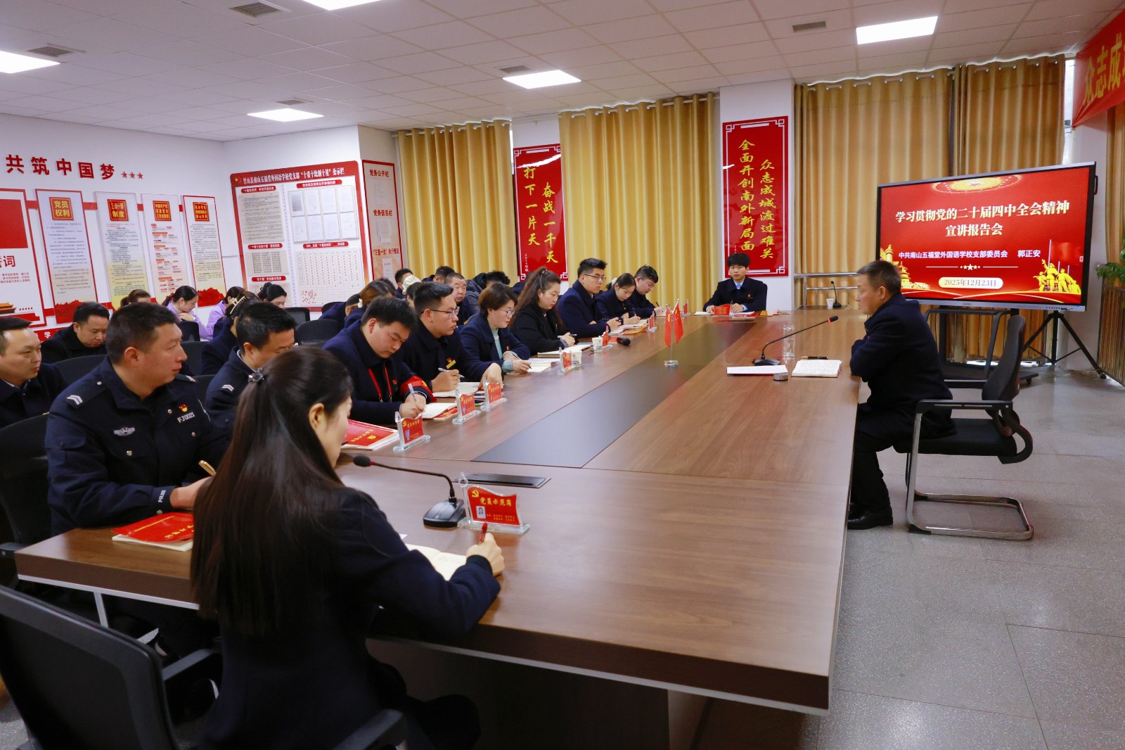此次主题党日活动的成功举办,不仅让全体党员教师对党的二十届四中全会精神有了更深刻的理解,更凝聚了学校党支部的向心力与战斗力。未来,南山五福堂外国语学校将持续把学习宣传贯彻全会精神作为重要政治任务,以党建引领学校各项工作提质增效,书写教育事业发展新篇章。(肖纯 朱传丽)