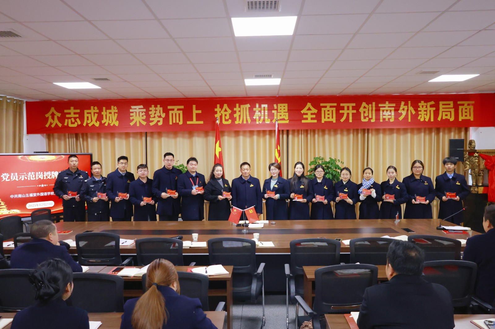 今日竹山网消息 12月23日,南山五福堂外国语学校党支部隆重举行十二月主题党日活动。