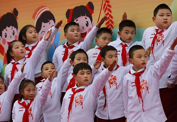 《红旗飘飘》《没有共产党就没有新中国》《红心向未来》《红星闪闪》《唱支山歌给党听》《打靶归来》……活动中,一首首镌刻着时代印记、脍炙人口的红色经典歌曲接连唱响。孩子们精神饱满,歌声嘹亮,饱含深情的演绎将现场气氛一次次推向高潮。激昂的旋律唱出了中华民族不屈不挠、勇敢顽强的精神气概,抒发了师生们对党和祖国的无限热爱与深情祝福。