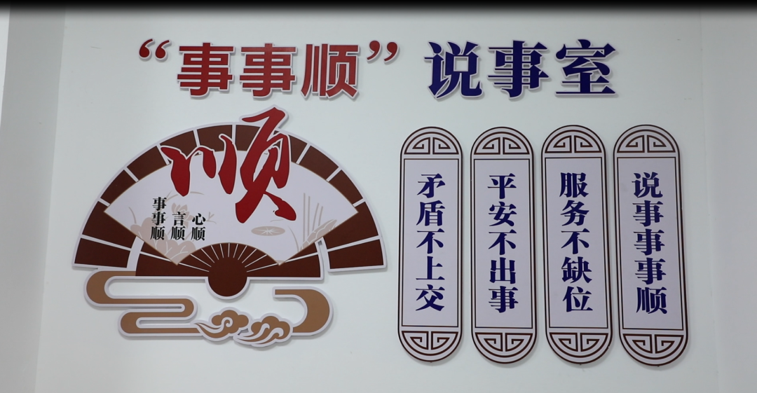 上面千条线、下面一根针。如何巧用这根“针”,串起千条“线”,考量着制度设计者的智慧。这里是城关镇大街社区“事事顺”说事室,这个说事室啊,发挥其“人熟、地熟、情熟”优势,让群众抬脚就能进门反映问题,努力将矛盾化解在诉前、化解在基层。