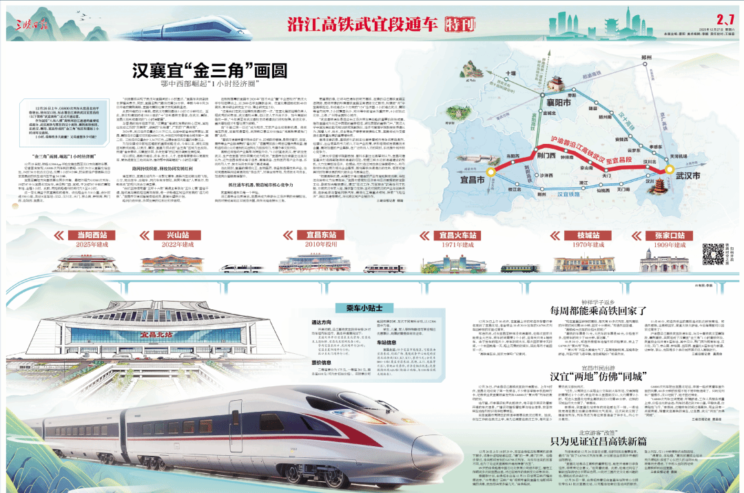 这一变化得益于武宜高铁的通车。该线路全长314公里,设计时速350公里,共设8座车站:汉口、汉川北、天门、京山南、钟祥南、荆门西、当阳西、宜昌北。