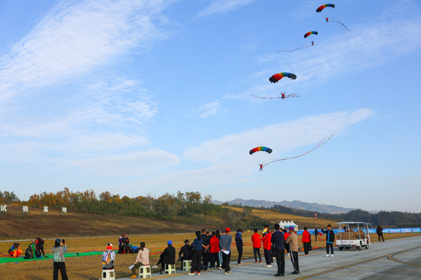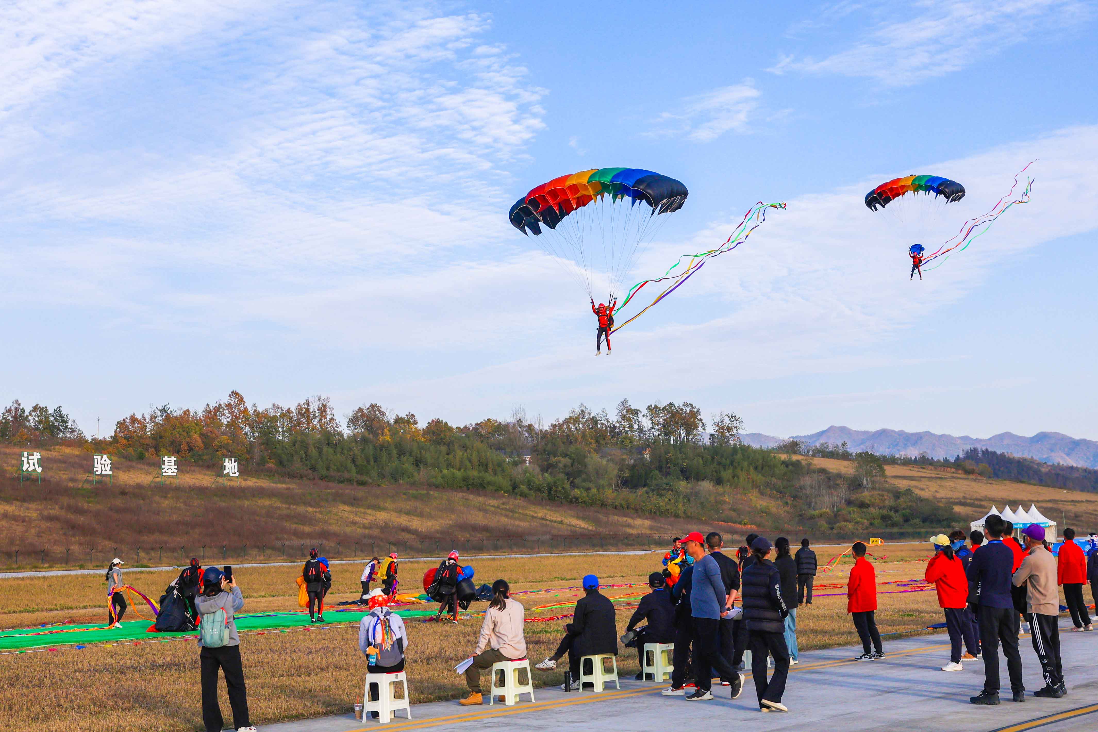 比赛期间,运动员们或如流星下坠完成特技动作,或如飞鸟精准操控落向靶心,或多人协作编织空中造型,完美展示出高空跳伞项目的竞技之美与极限运动的独特魅力,既充分展现了竹山低空经济发展的蓬勃活力,又为现场游客带来了一场紧张刺激的视觉盛宴。(但兴竹 党时轩 卢波 章伟摄)