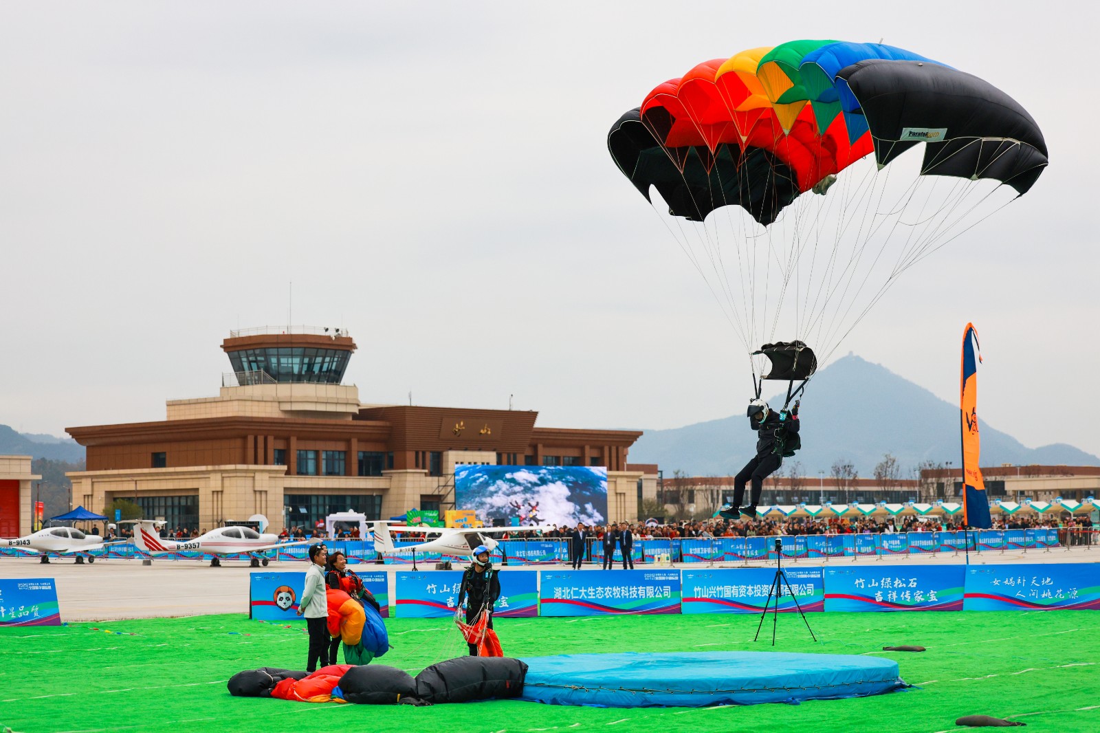 今日竹山网消息 11月20日,2025年全国跳伞锦标赛在竹山女娲山通用机场圆满落幕。6天时间里,来自湖北、北京、河南等7支代表队150余名顶尖跳伞健儿,在竹山女娲山通用机场上空展开巅峰对决。