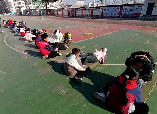 今日竹山网消息 1月12日,宝丰镇施洋小学的操场上运动氛围火热,学生们正积极投入跳绳、仰卧起坐、跑步等体育考核中。