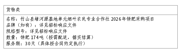 一、项目名称:竹山县堵河源基地单元烟叶农民专业合作社2026年饼肥采购项目