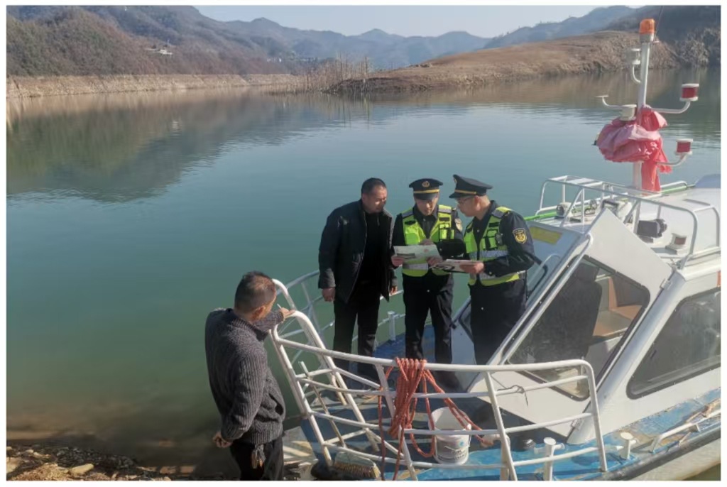 今日竹山网消息 1月13日,上庸镇联合县交通运输执法大队开展水上安全联合检查行动。