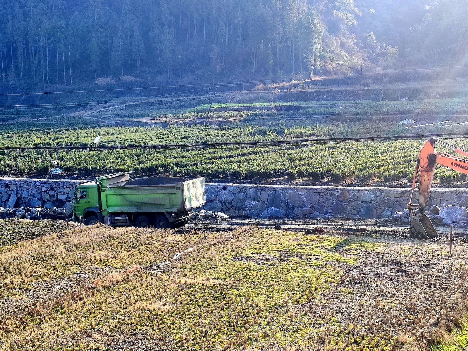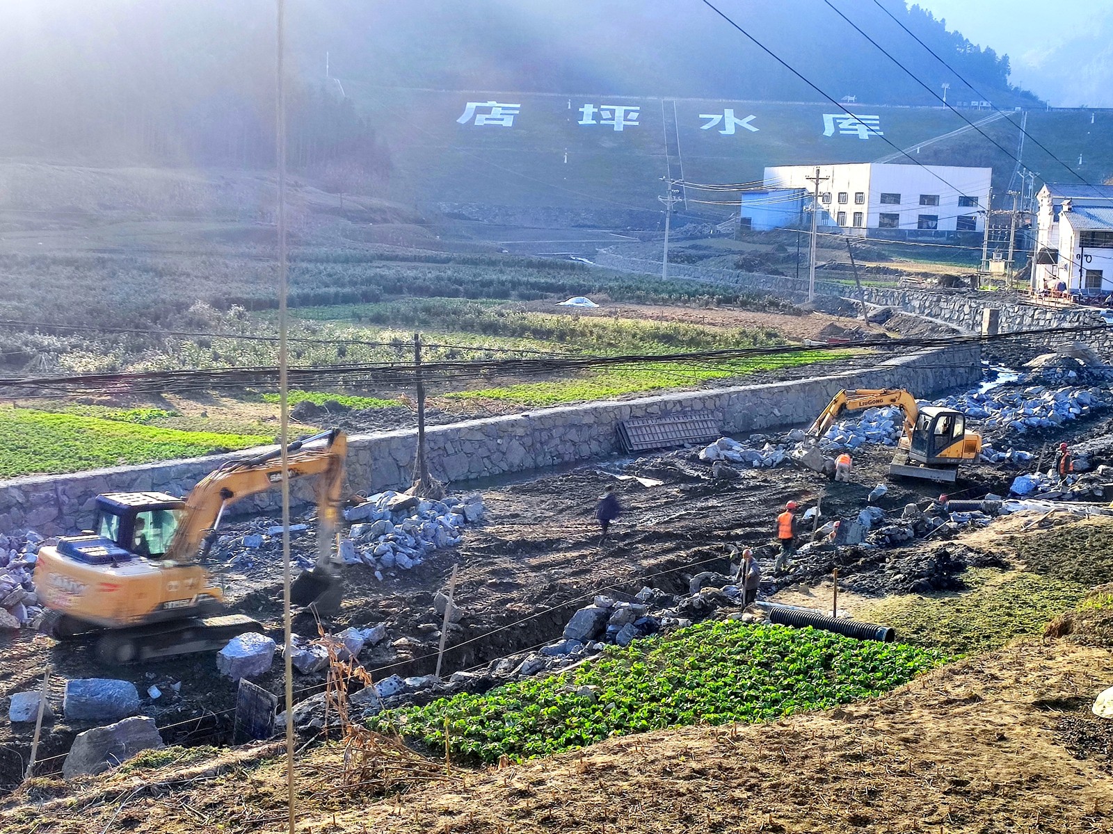 今日竹山网消息 1月14日,在竹坪乡店坪村河道治理工程施工现场,机械轰鸣、人头攒动,挖掘机、运输车有序作业,施工人员分工协作开展清淤疏浚、堤岸加固、边坡修整等施工作业,一派热火朝天的建设景象。