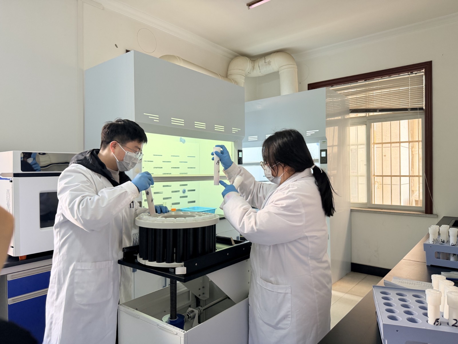 (检验人员正在对样品进行上机前处理操作)