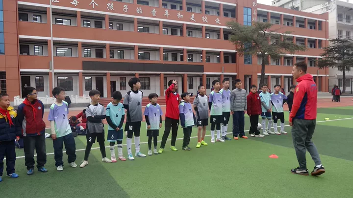 王教练摒弃枯燥训练模式,以趣味互动为切入点,从控球、传球、射门等基础技巧入手,细致讲解技术要领。针对队员们动作不规范之处,教练俯身手把手纠正,耐心指导发力方式与身体协调技巧。随后,队员们紧跟教练节奏反复练习,奔跑、盘带、传球、射门一气呵成,每一个动作都力求标准到位,展现出少年球员的蓬勃朝气与拼搏劲头,足球在小球员脚下愈发灵活。学校全体体育教师围站训练场四周,记录教学流程、训练方法与指导要点。课后还主动与教练交流教学疑问,探讨校园足球日常训练的优化路径,现场学习氛围浓厚。