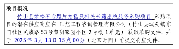 2、项目名称:竹山县绿松石专题片拍摄及相关书籍出版服务采购项目