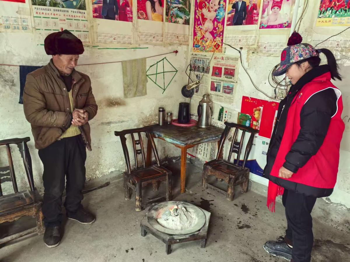 在除雪保通的同时,乡村两级干部开展敲门行动,以“不漏一户、不落一人”为原则,第一时间深入农户家中,实地查看独居老人、留守儿童等困难群体的住房安全、取暖设施、用电用火等情况,详细了解居民冬季取暖方式、取暖设备是否安全合规,有无一氧化碳中毒隐患,与居民面对面讲解预防一氧化碳中毒、火灾自救、用电安全等知识,并在安置点、村委会等人员密集场所张贴《冬季取暖安全须知》,提醒群众“人离火熄、窗留通风”,切实增强自我保护意识。