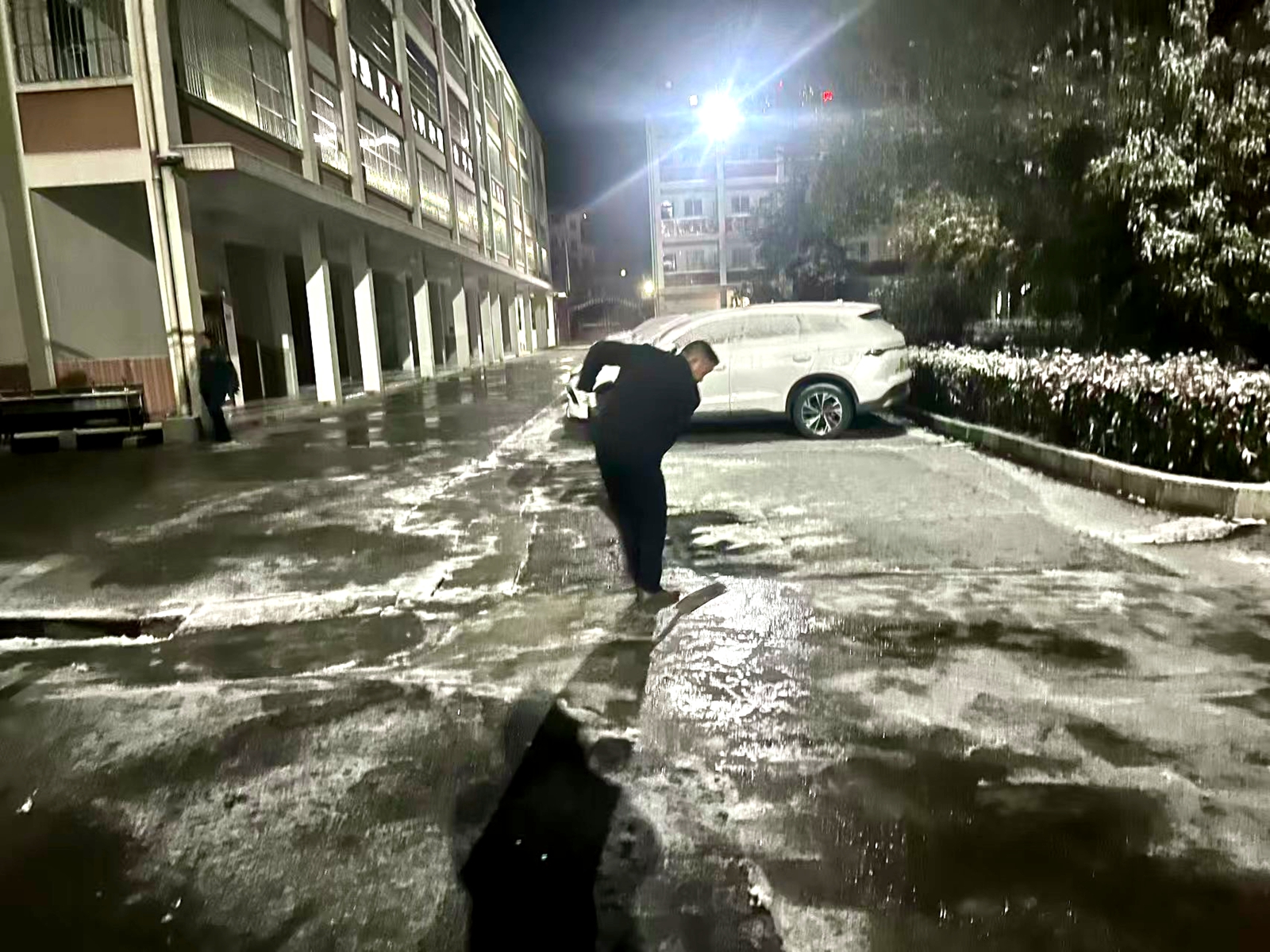 乡政府第一时间周密部署,将安全生产与民生保障摆在首位。广大党员干部冲锋在前,带领群众组建应急清障队伍,顶着凛冽寒风与持续低温,奔赴各主要交通卡口和关键路段。他们利用铁锹等工具奋力清除路面积雪积冰,并科学撒布工业盐加速融雪化冰,全力打通受阻道路,保障交通命脉的基本通畅。在重点路口,工作人员坚守岗位,对过往车辆进行谨慎慢行的安全提示,对行人进行暖心劝导,最大限度降低出行风险。