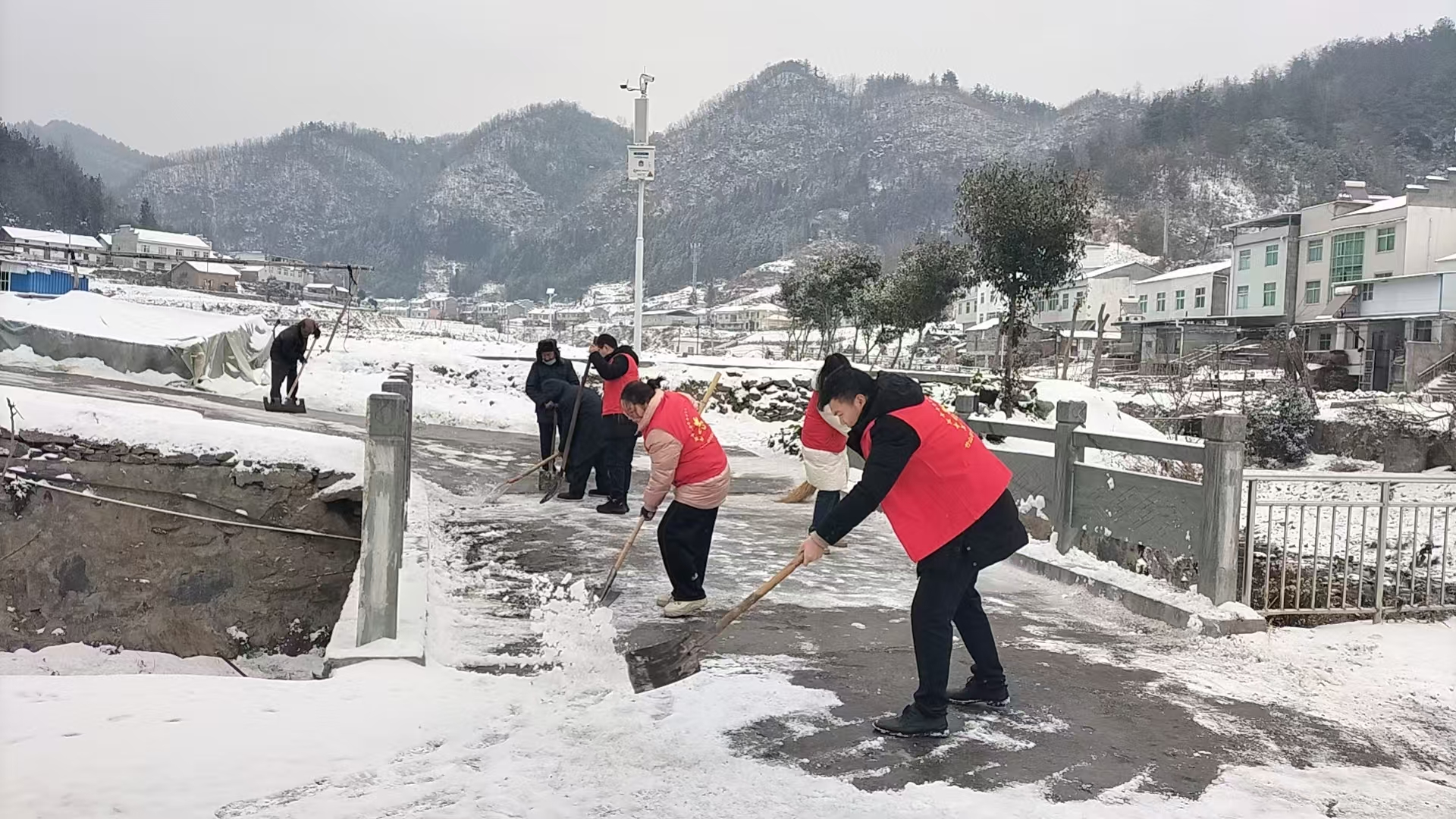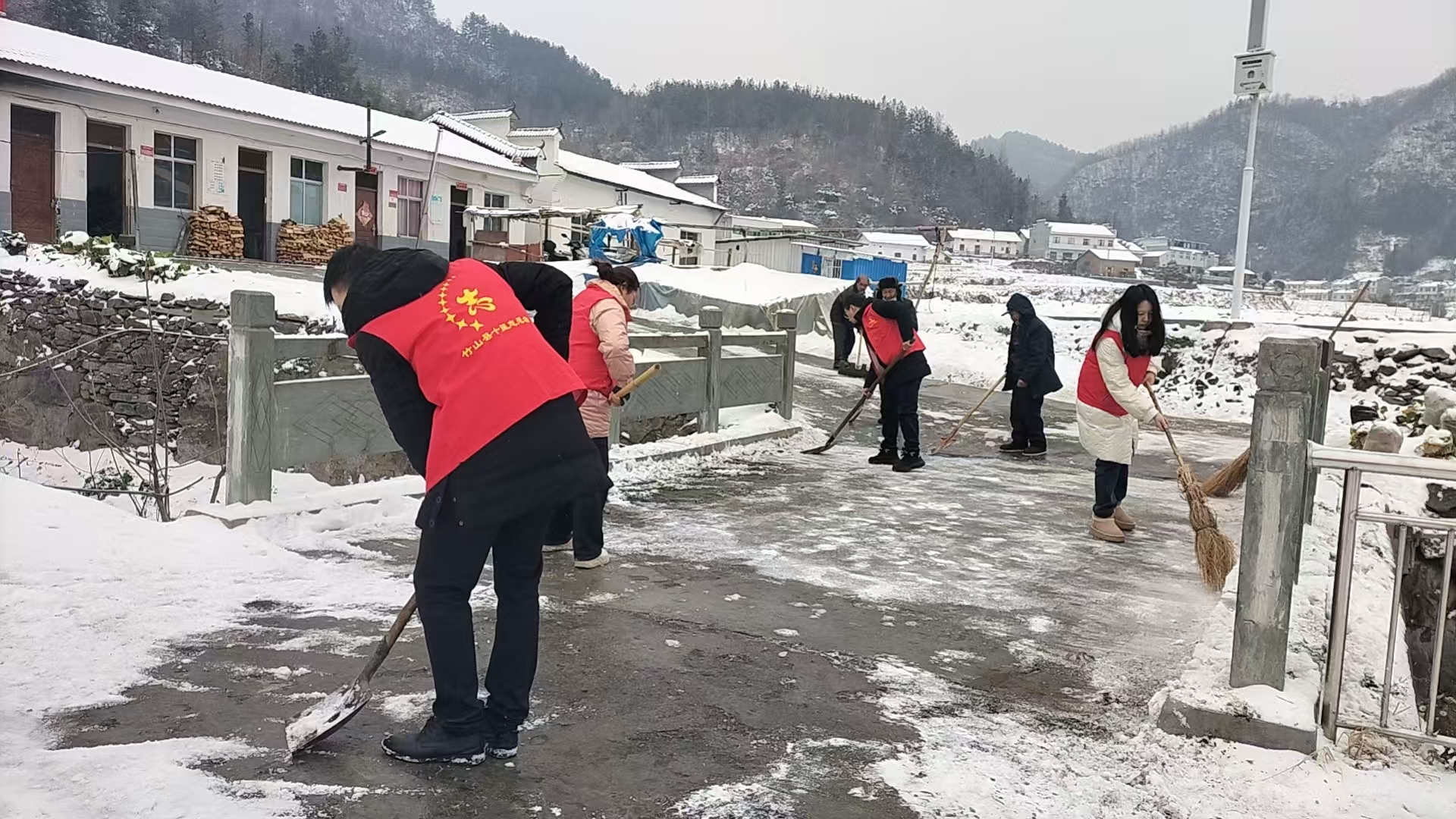 活动中,志愿者们带着铁锹、扫帚等工具,分组奔赴村内孤寡五保老人住所。大家弯腰挥铲扫雪,重点清理老人家入户小路、桥面的积雪与薄冰,对易滑路段反复清扫、铲除。提醒老人雪天尽量减少外出,注意居家安全。“年纪大了,腿脚不方便,门口积雪多,自己也清不动,多亏了这些志愿者,现在走路再也不用小心翼翼了。”看着干净畅通的入户路,独居老人李大爷脸上露出了欣慰的笑容。