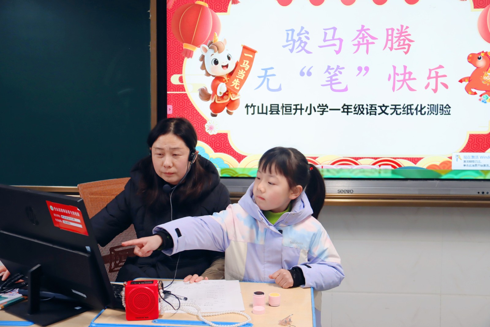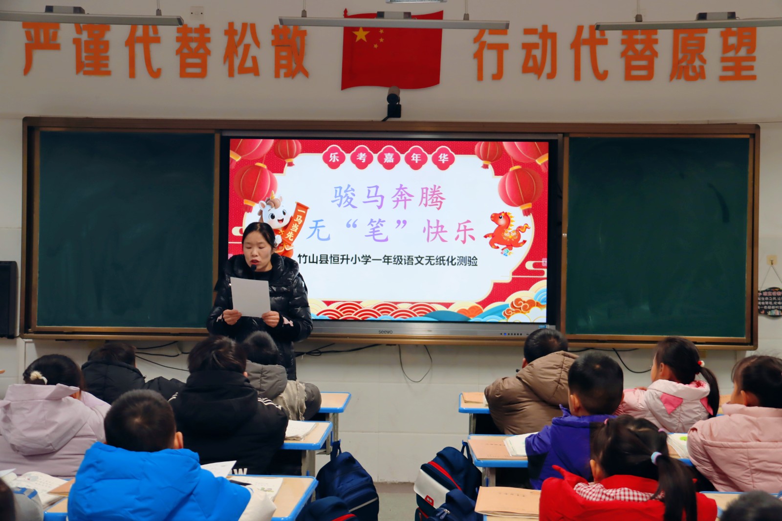 今日竹山网消息 1月21日,恒升小学组织一二年级开展为期两天的“无纸笔”期末素质测评,主题为“骏马奔腾无‘笔’快乐”,以游戏化、情景化方式考察学生综合素养,实现“乐学乐评”。