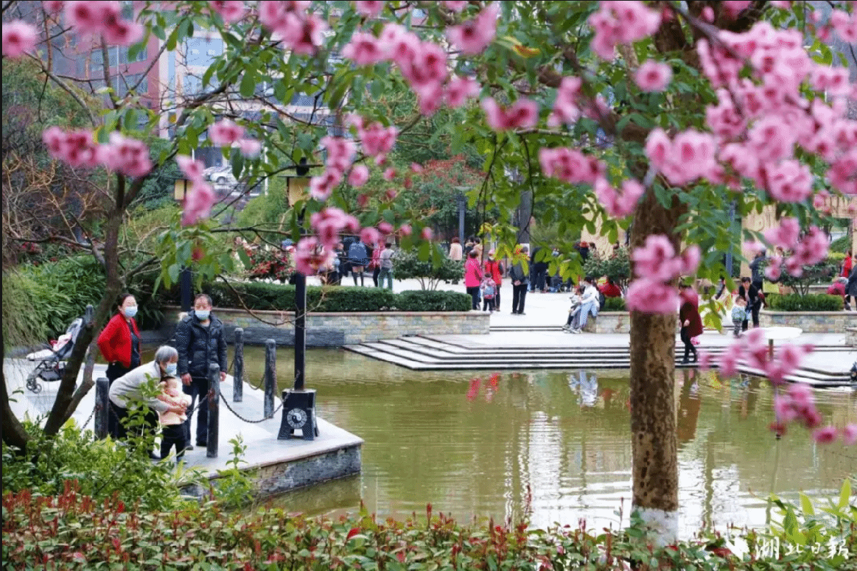 市民在十堰城区游园玩耍。(湖北日报客户端通讯员 全正 摄)