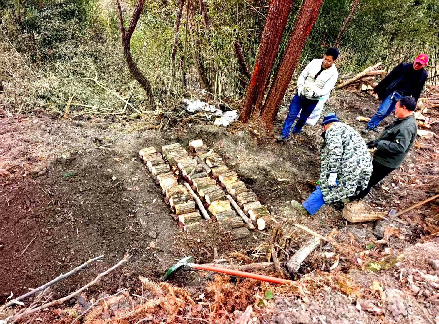 今日竹山网消息 冬至前后,竹山县得胜镇界岭村40多名村民正弯腰躬身,将砍好的花栎树段整齐码放,小心翼翼埋入肥沃的腐殖土中。“这些树段是培育蜜环菌的‘营养床’,等开春就能种天麻,咱守着山林也能赚钱!”得胜镇界岭村村民宴刚道手上动作不停,脸上满是期待。