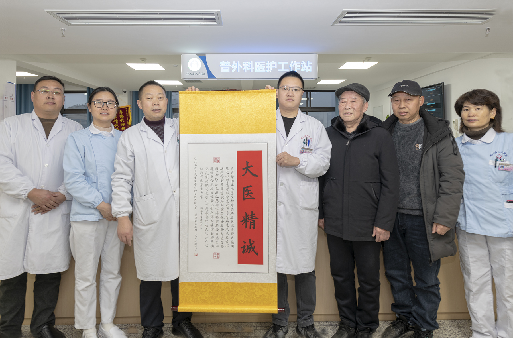 这幅书法作品如今悬挂在普外科办公区,成为科室一道独特的风景线。它不仅是患者对医护人员的褒奖,更是医院医患和谐关系的温暖见证,彰显了医院以患者为中心、践行医者仁心的服务理念。