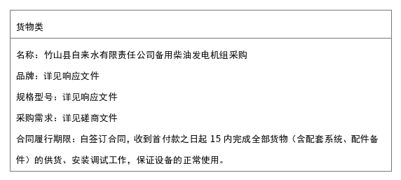 竹山县自来水有限责任公司备用柴油发电机组采购