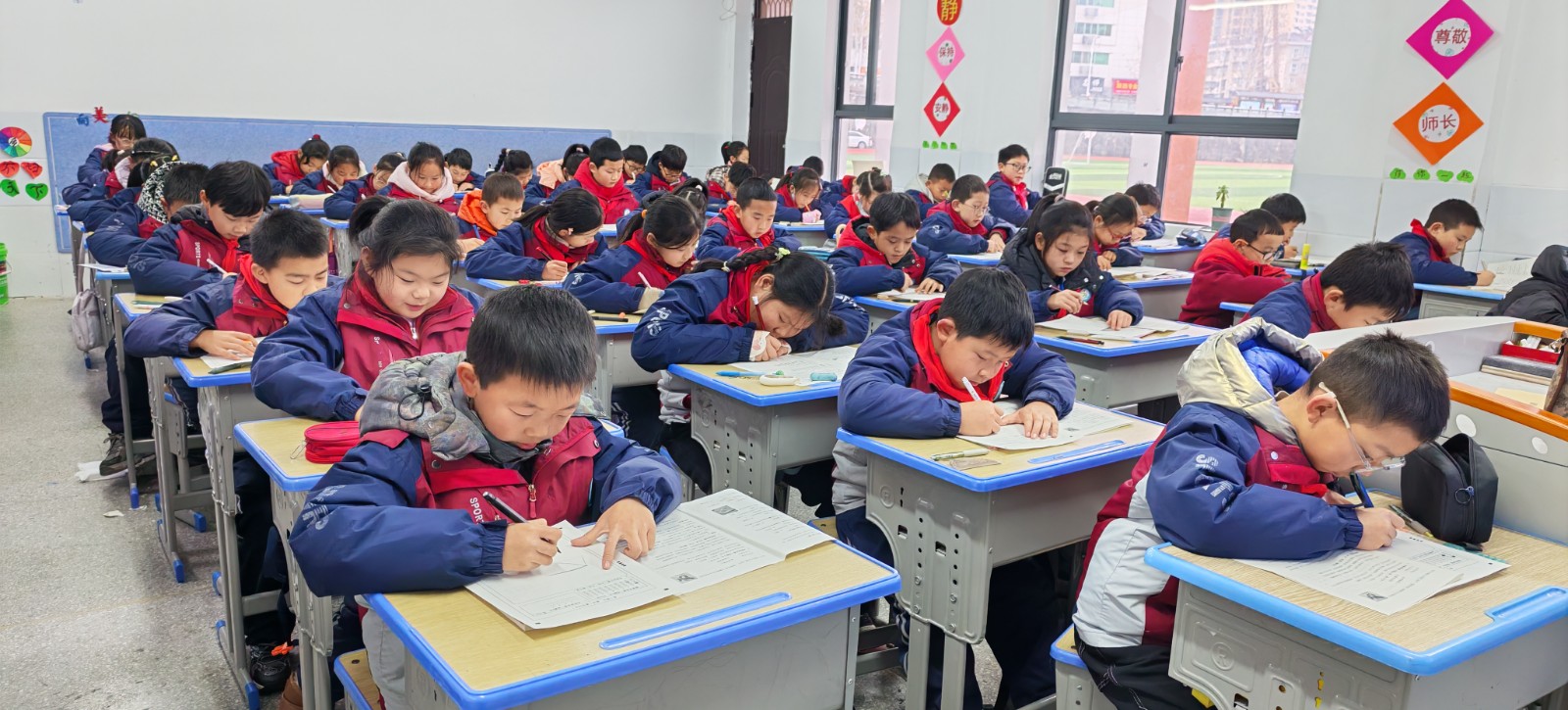 上午10:30,抽测正式开始,在老师的引导下,学生们神情专注,认真答题。测评内容涵盖音乐欣赏、节奏辨识、简谱识读、美术基础知识、线条运用、色彩搭配及创意表达等多个维度,注重考查学生的艺术实践能力和审美素养,体现了“以美育人、以美化人”的教育理念。