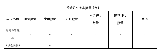 说明:1.“申请数量”的统计范围为统计年度1月1日至12月31日期间许可机关收到当事人许可申请的数量。2.“受理数量”“许可数量”“不予许可数量”“撤销许可数量”的统计范围为统计年度1月1日至12月31日期间许可机关作出受理决定、许可决定、不予许可决定和撤销许可决定的数量。3.涉企案件填入第二行单独分行统计。4.注销行政许可,可统计在“其他”里。