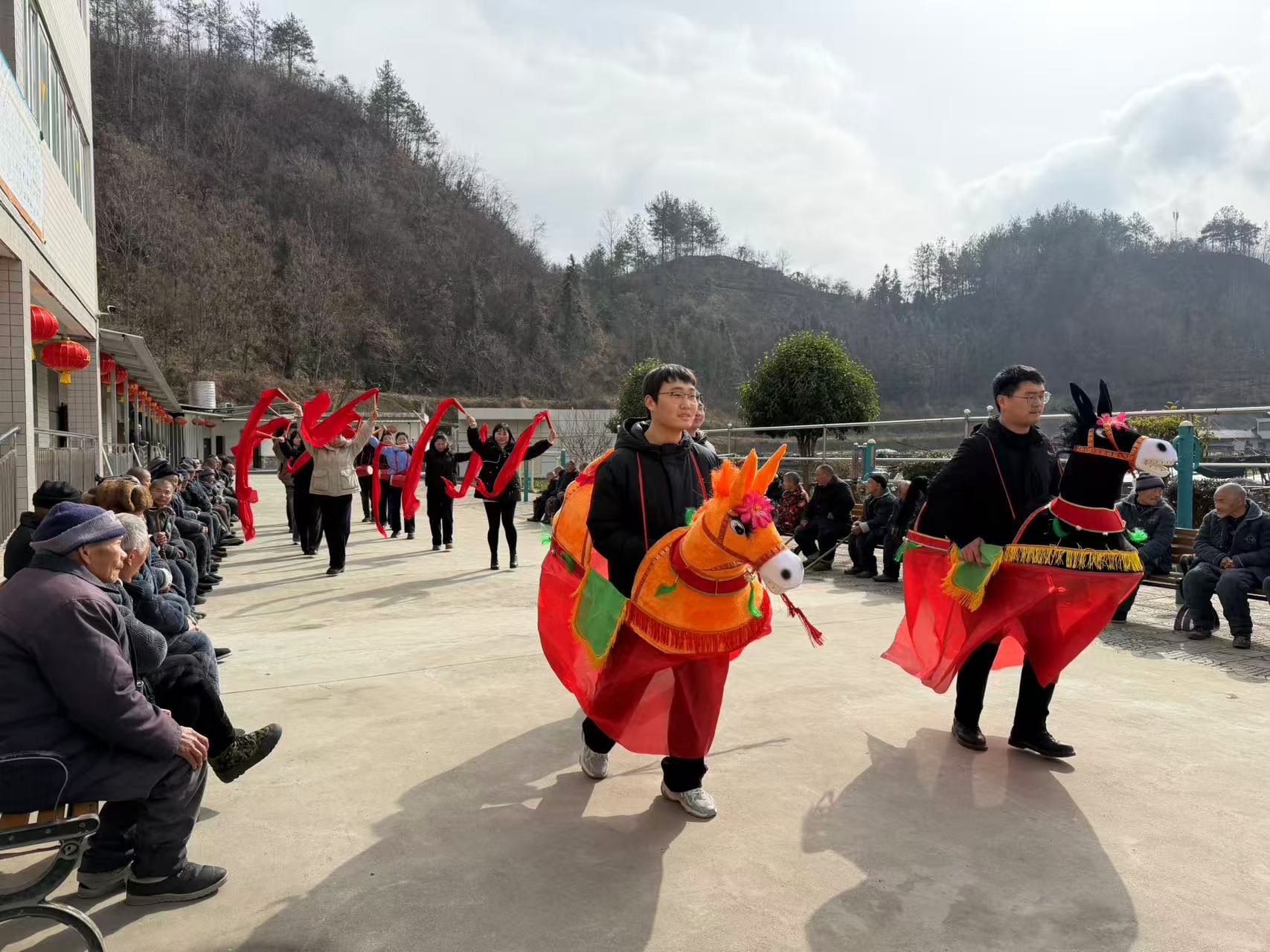 活动中,青年干部进行了系列民俗表演。毛驴表演生动活泼,引得现场笑声不断。秧歌表演喜庆欢快,展现出乡村的祥和氛围,收获阵阵掌声与喝彩。老人们围坐观看,交流交谈,脸上洋溢着笑容。