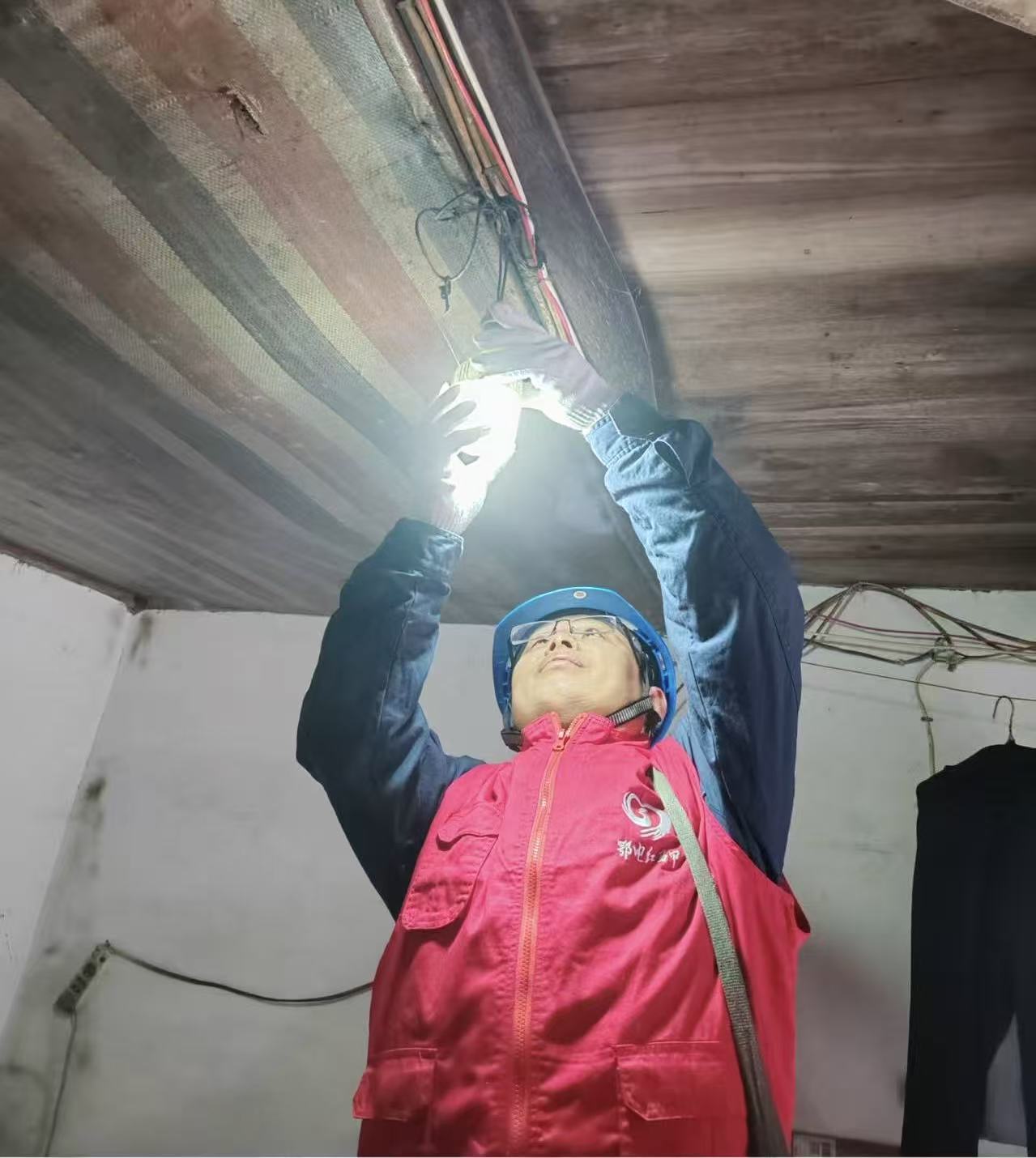 经检查,电表运行正常,故障位于用户表后线路。张勇逐一排查,最终在屋外门框上方发现因接触不良导致短路的发黑接头,同时发现家中部分灯泡已烧坏。他迅速断开电源,重新接紧线路、包扎绝缘,并为老人更换了新灯泡。处理中,张勇发现厨房插座老化,主动提醒老人更换,并陪同其购买新插座后免费安装。14时50分,老人家中全面恢复供电。