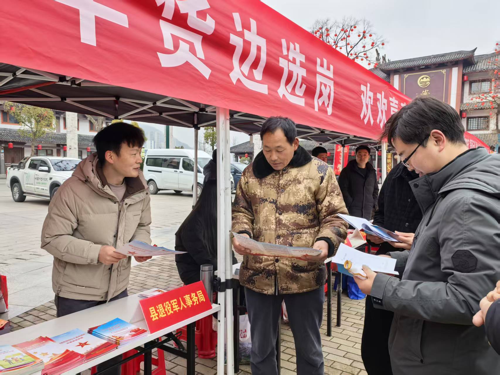 今日竹山网消息 1月31日,县退役军人事务局、县人社局,在桃花源街区女娲广场举办2026年度“春风行动”——退役军人专场招聘会。