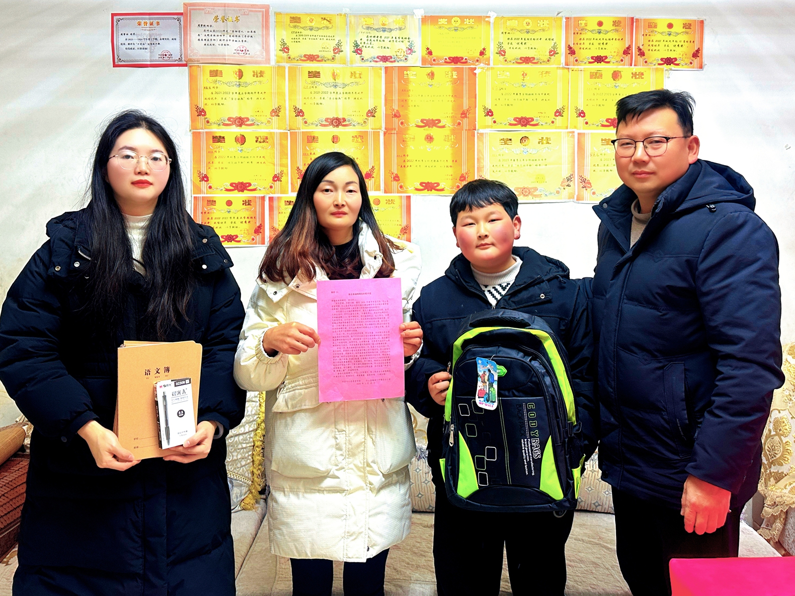 今日竹山网消息 近日,竹坪小学校长带领四(1)班班主任一行,走访慰问“十星级好少年”周崇浩。