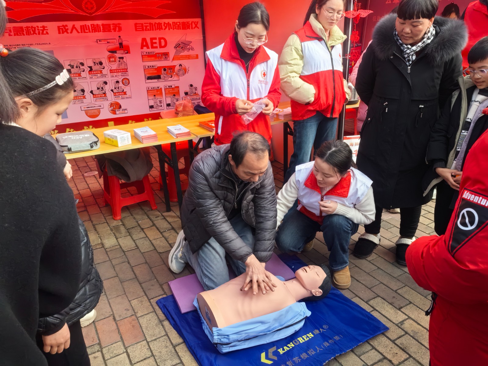 活动现场,县红十字会工作人员和志愿者通过理论讲解、模拟演示与互动体验相结合的方式,向广大群众普及急救知识。在心肺复苏(CPR)教学区,讲师借助模拟人道具,详细展示了如何判断意识、呼救求助、胸外按压和人工呼吸等关键步骤,强调了“黄金四分钟”内实施有效急救的重要性。不少群众在红十字会工作人员指导下亲身尝试操作,初步掌握了基本流程和操作要点。
