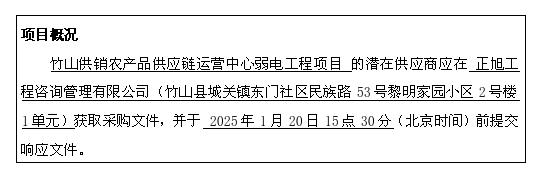 2、项目名称:竹山供销农产品供应链运营中心弱电工程项目