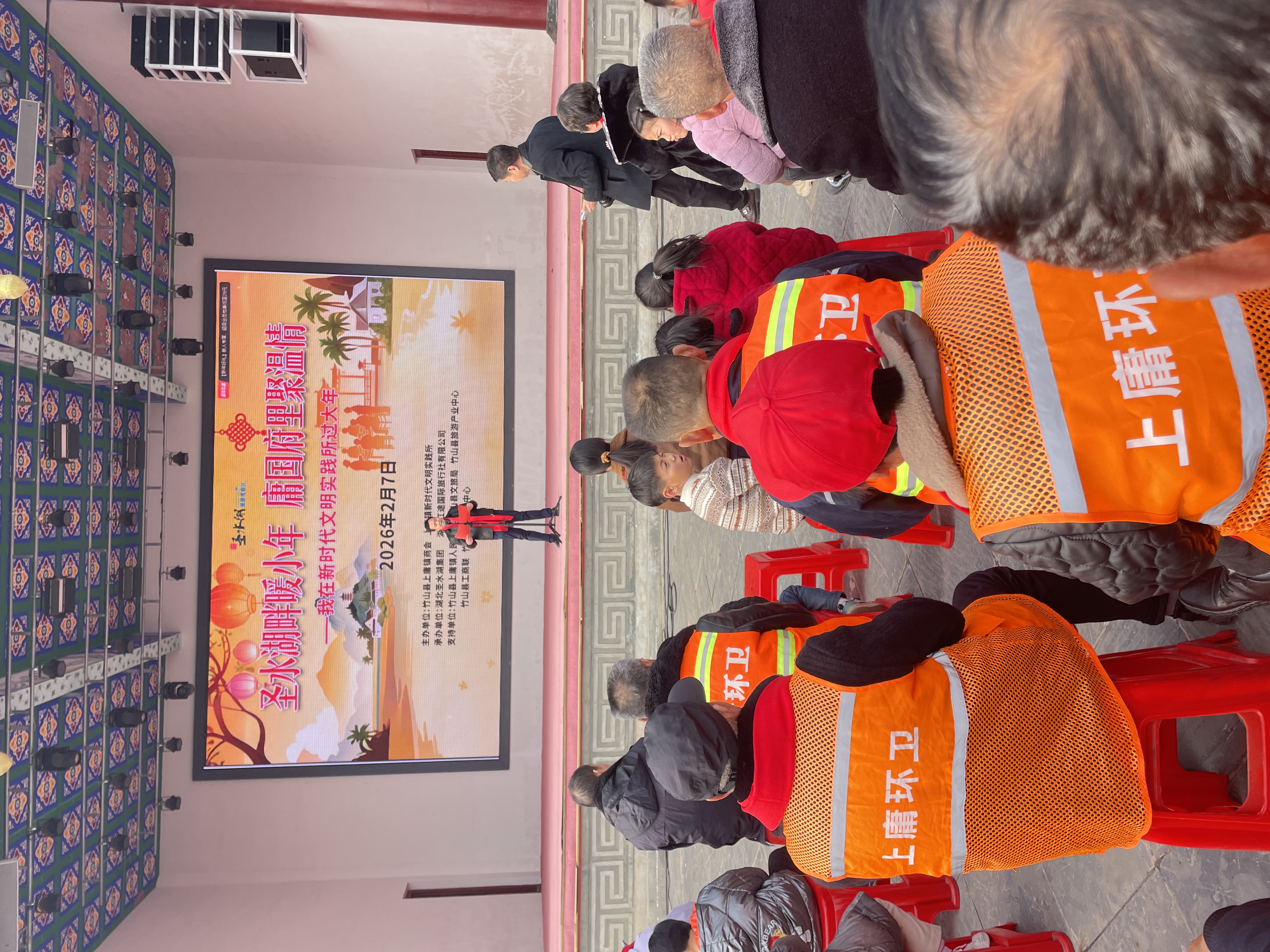 今日竹山网消息 2月7日,上庸镇联合圣水湖文化旅游景区,在新时代文明实践所举办“圣水湖畔暖小年 庸国府里聚温情”主题活动,邀请环卫工人、困难群众、道德模范及一线工作者代表共迎佳节。