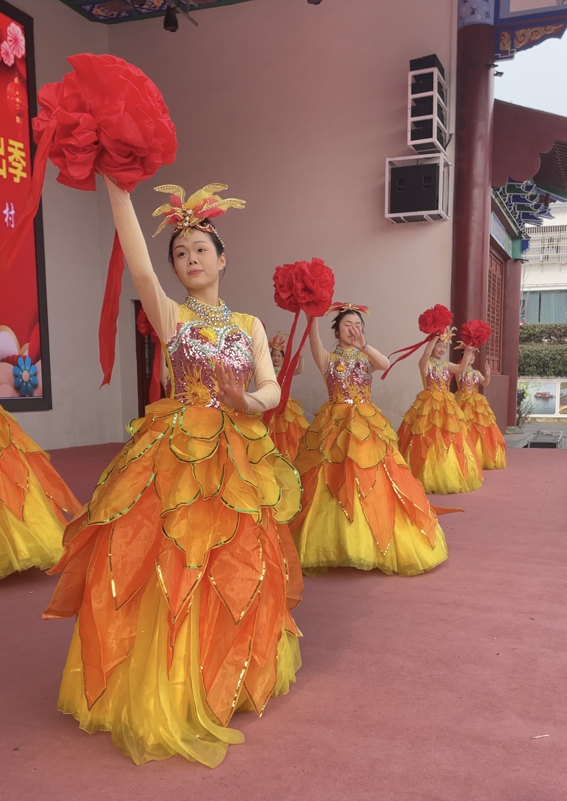 活动现场,县高腔剧团献上精彩文艺演出,镇内书法爱好者们挥毫泼墨,为群众免费书写春联、送去祝福。大家随后乘船游览圣水湖,欣赏水乡风光,并在庸国府大酒店共享温馨团圆饭,畅叙家常。夜幕降临,篝火晚会与璀璨的非遗打铁花表演将节日气氛推向高潮,为活动画上圆满句号。