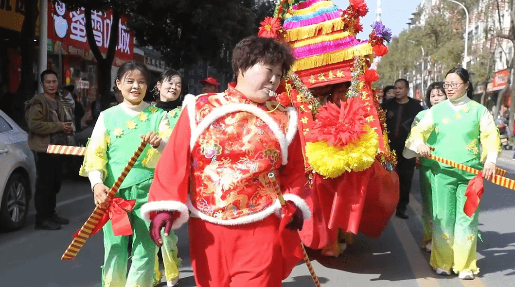 记者在现场看到,巡游队伍从麻家渡小学出发沿集镇主干道依次亮相,百余名干群组成七大特色方阵沿街巡游,十余台好戏轮番上演。在宝石市集活动现场,舞龙舞狮队伍活力四射,巨龙上下翻飞、雄狮威风凛凛,引得群众阵阵喝彩。造型夸张的人偶穿梭人群,与大家热情互动,逗得孩童们笑声不断。热闹的花船表演中,演员们身姿轻盈,动作翩然。
