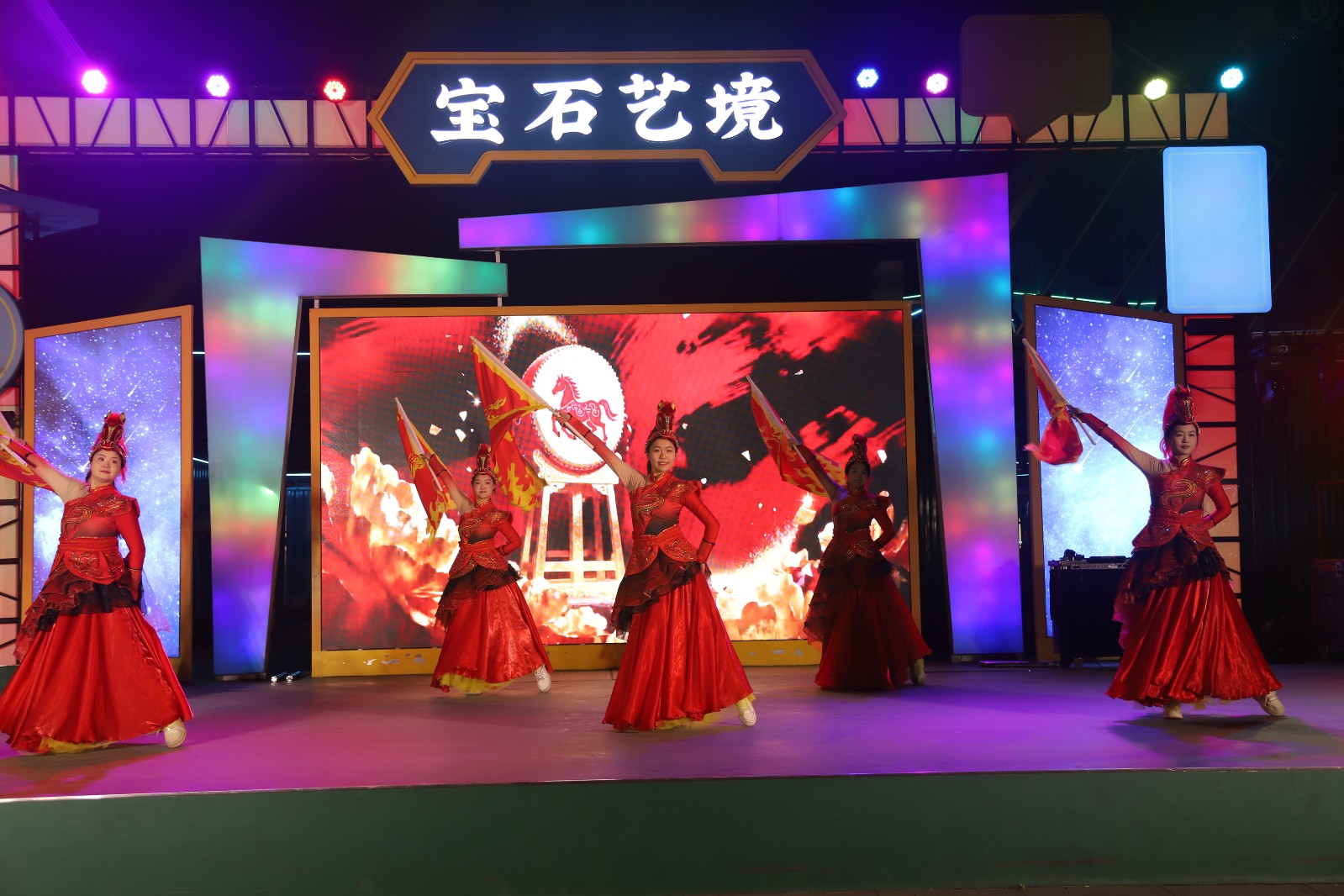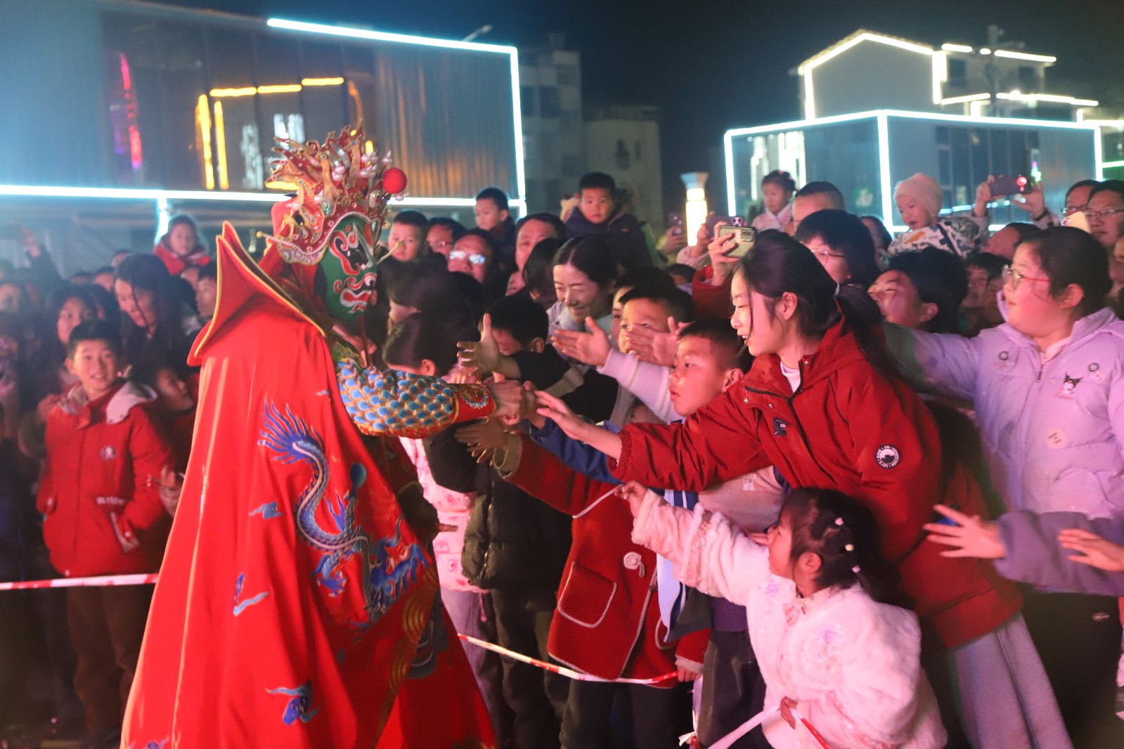 巡游落幕,宝石艺境大舞台迅速成为欢乐的海洋。非遗舞龙、舞狮气势恢宏,金龙腾飞、瑞狮欢跃,尽显传统民俗魅力;彩船轻摇、挑花篮轻盈灵动,演员们身着盛装,舞步优美,勾勒出乡村喜庆画卷;趣味人偶穿梭其间与群众亲切互动,现场氛围热烈非凡,让群众近距离感受传统民俗的独特魅力。
