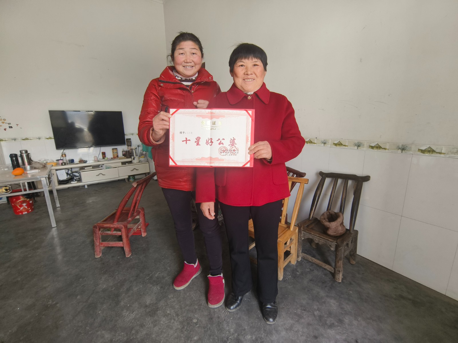 活动现场,镇村干部逐一上门,将荣誉证书送到获奖对象手中,并详细宣传其先进事迹。“能拿到这个证书,我既倍感珍惜,也觉得多了一份责任。往后我会一如既往用心照顾公婆,更会以自身行动带动邻里和睦相处。” 双堰村 “十星好儿媳” 获得者陈立琴接过证书后,朴实的话语里满是真诚与担当。