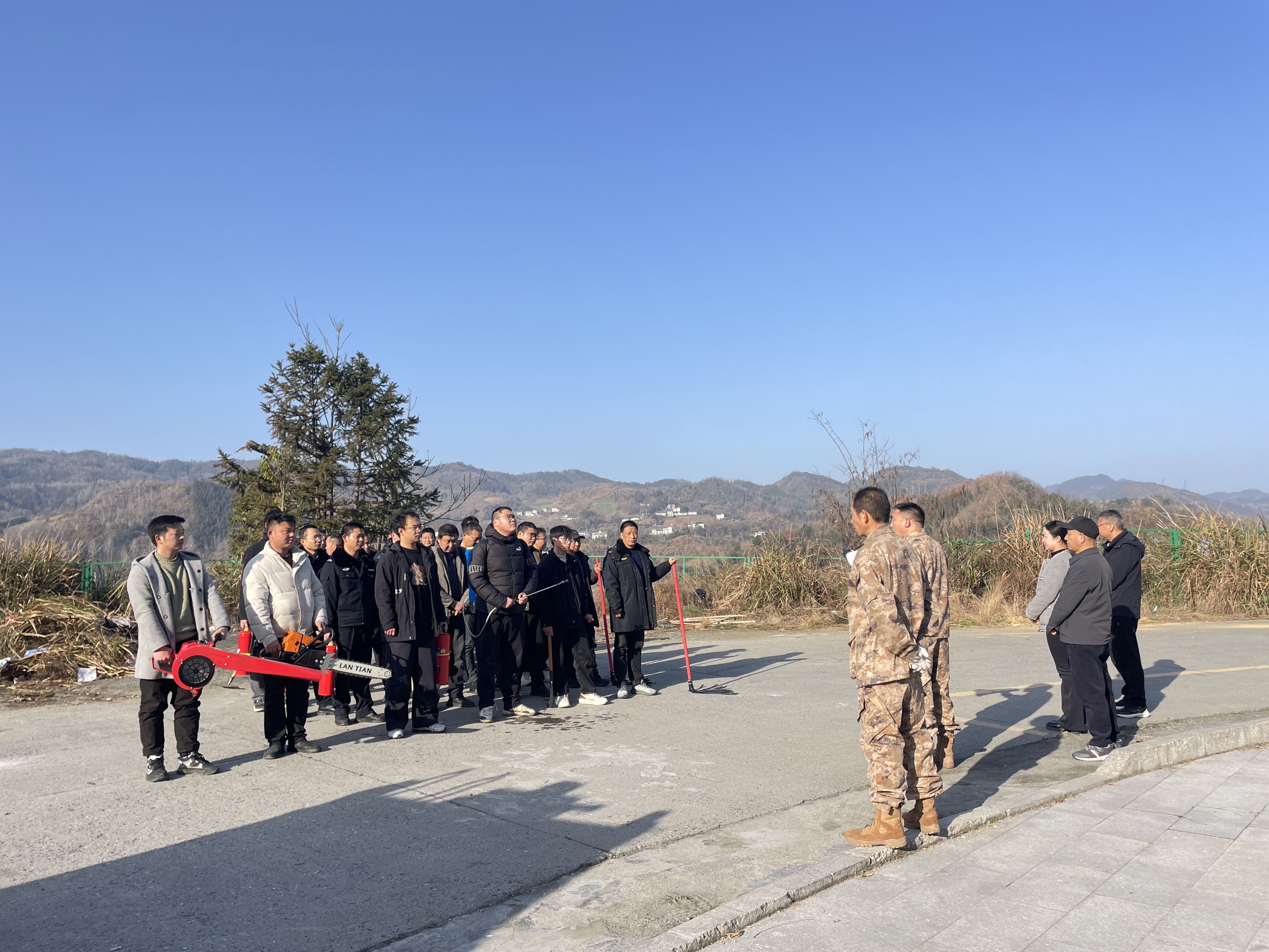 上午9时,由镇政府机关干部、镇直单位工作人员及周边村村干部组成的应急救援队伍从镇政府出发,准时抵达演练现场。镇森林防火指挥部迅速完成队伍集结与岗前培训,围绕干粉灭火器、灭火弹、风力灭火机、消防车等器材的操作规范进行详细讲解,明确人员分工后正式启动演练。